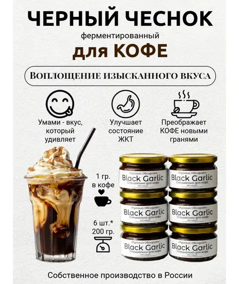 Паста из чёрного чеснока для кофе «Русский Обсидиан»  Откройте новую грань любимого кофе с пастой Black Garlic! Это инновационный продукт из чёрного...