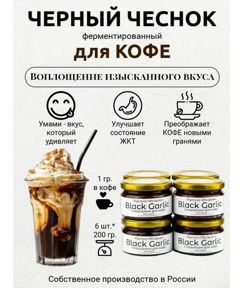 Сочетая в себе лучшие качества чёрного ферментированного чеснока наша паста не только делает кофе оригинальным, но и добавляет вашему напитку элемент заботы о здоровье без резкого запаха и послевкусия классического чеснока.