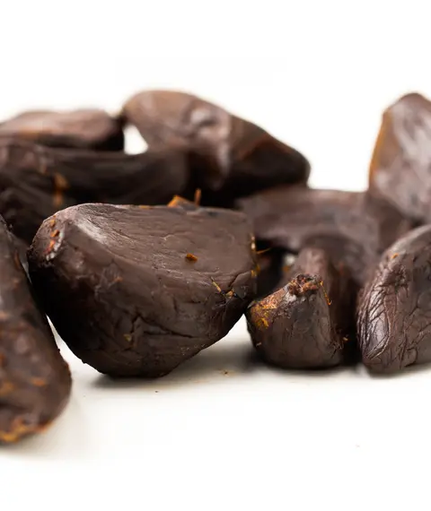 Паста черного чеснока обладает сложным вкусовым букетом, где гармонично переплетаются ноты карамелизированного лука, чернослива и легкие трюфельные акценты. Такой уникальный вкус достигается благодаря технологии ферментации, которую мы усовершенствовали. Процесс производства включает несколько ключевых этапов, каждый из которых строго контролируется: