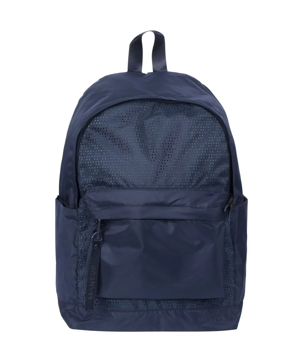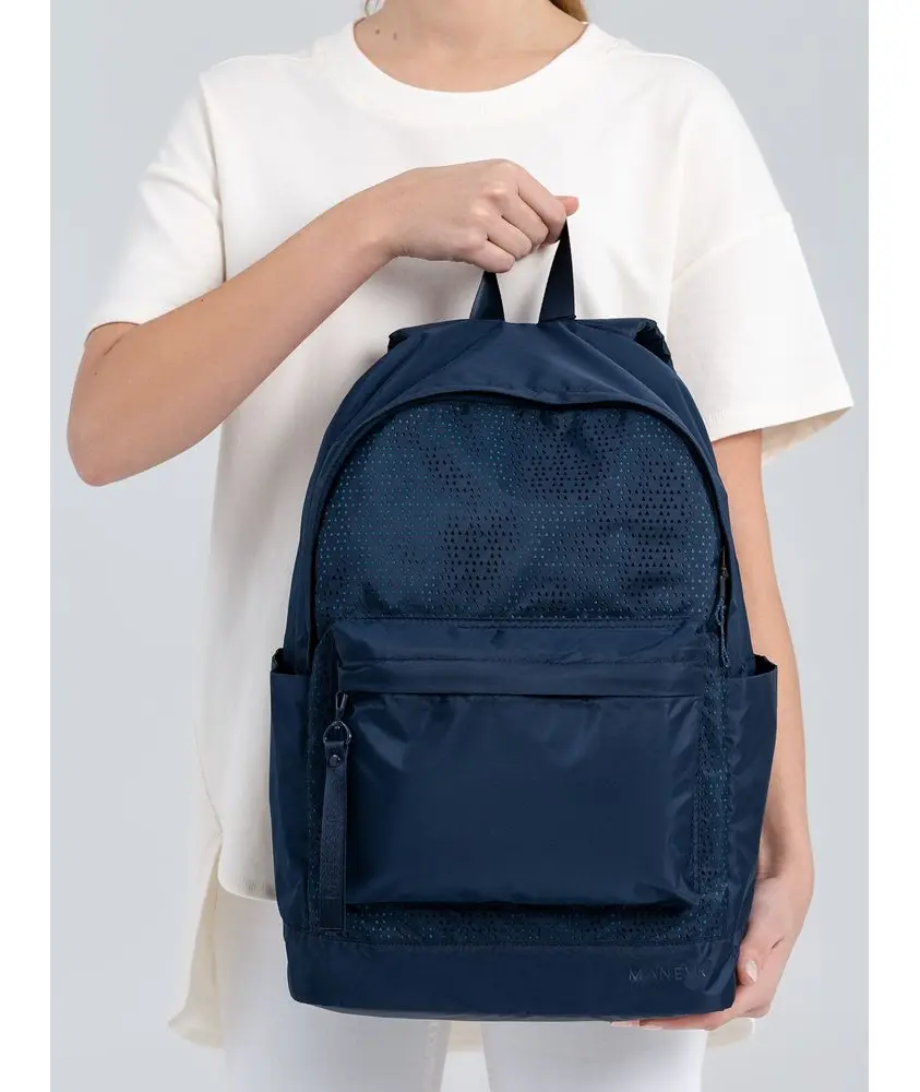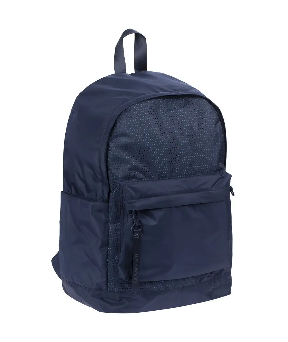 Цвета сумок  в коллекции Triangel позволяют создавать модные монохромные или контрастные сочетания с другими изделиями бренда Manevr. Рюкзаки изготовлены из шелковистого полиэстера, в отделке использована лазерная перфорация паттерна.
